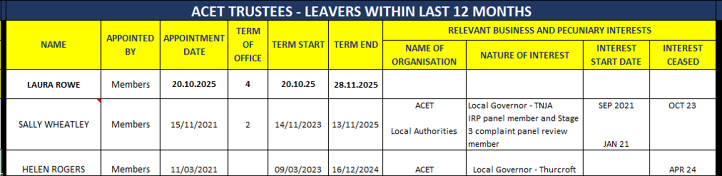 ACET Trustees Register of Interests & Attendance