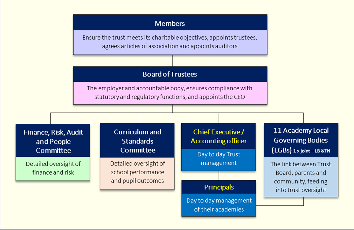 At ACET we believe that effective governance is vital for ensuring the success, accountability, and strategic direction of our trust. Our governance structure is designed to provide robust oversight and support to our academies, promoting excellence in education and the well-being of our pupils/students and staff.